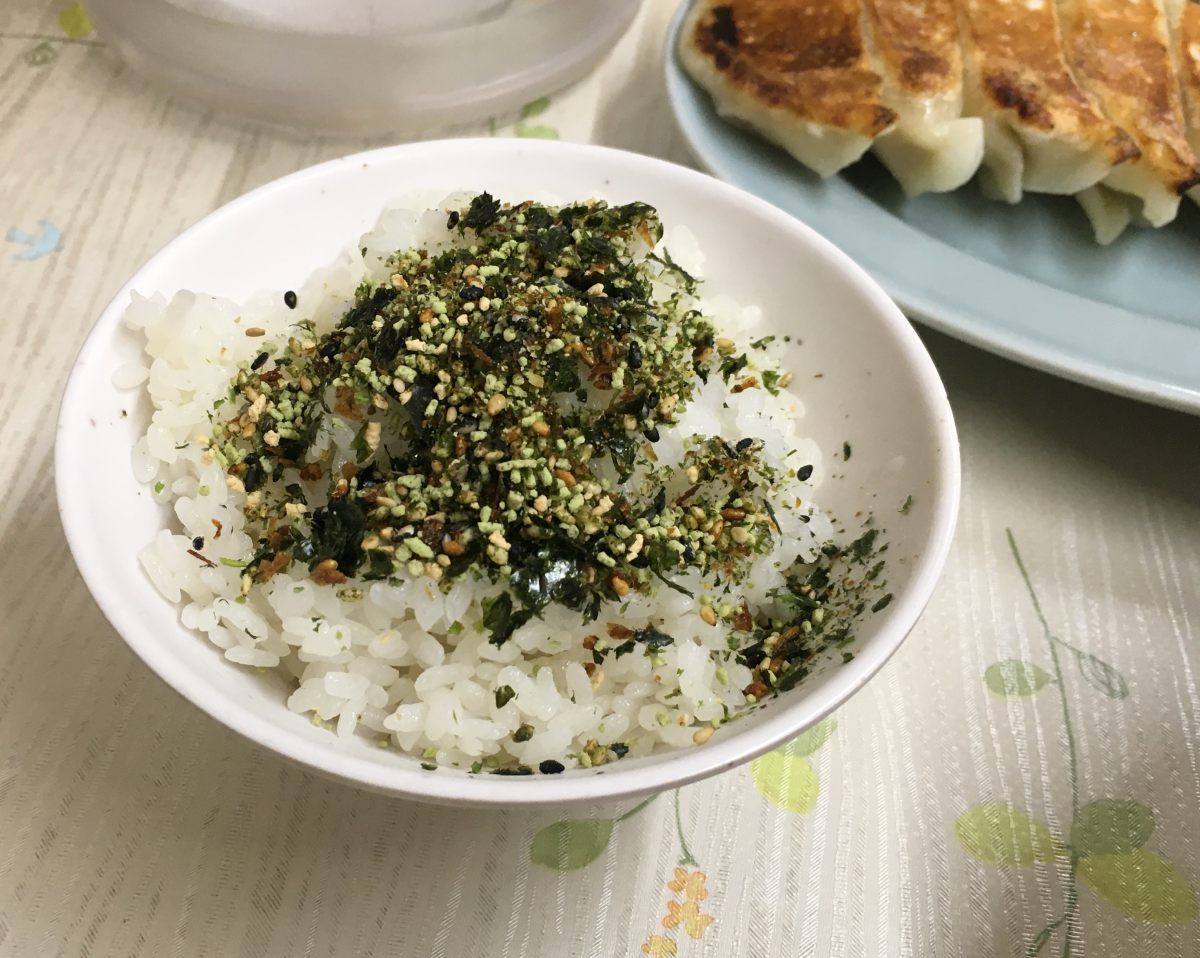あと、くるまやラーメンでは、ラーメンを注文するとライスが無料なのですが、そのライスにワサビふりかけをかけてくれるサービスもあるんです。
