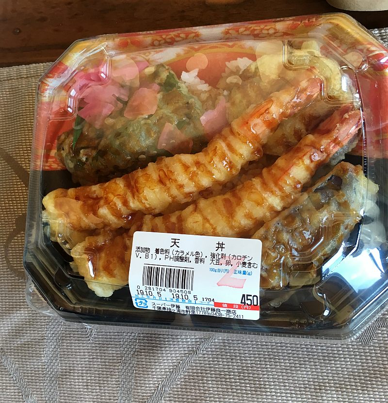 この大きなダブルエビ天丼すごいですよ、450円ですよ。